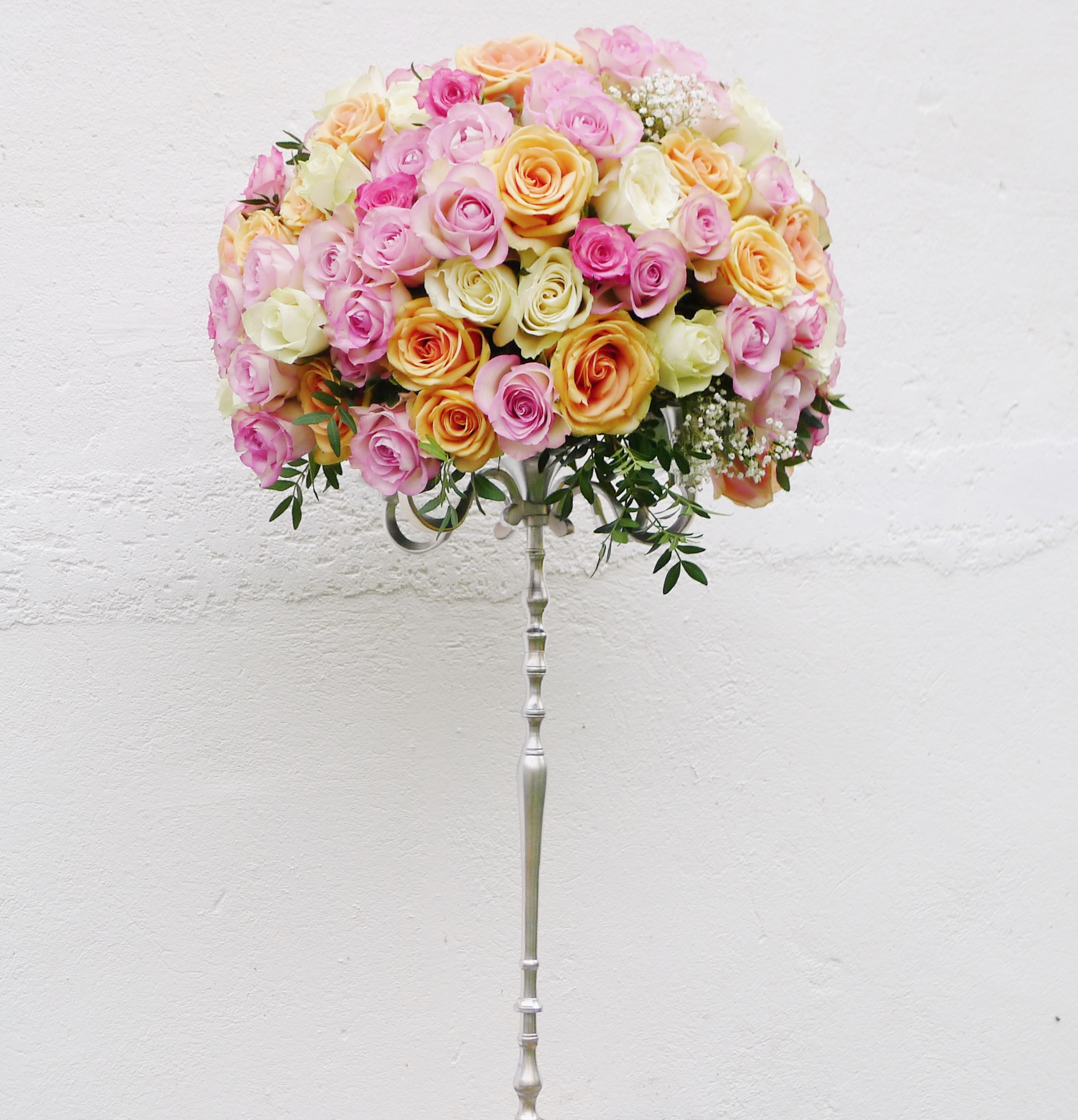 Les blogs américains relayés par Pinterest nous narguent de Maxi boules de fleurs centre de table, le must étant la MEGA boule de roses 🙂