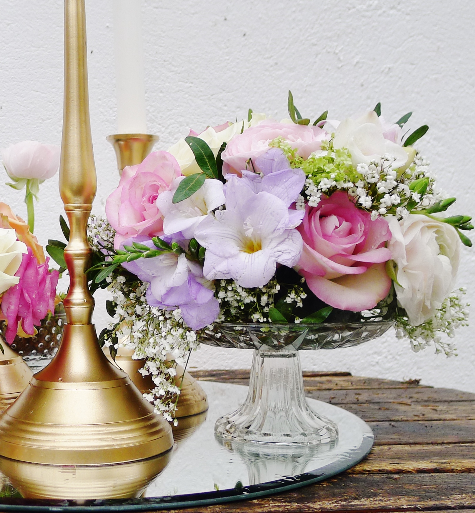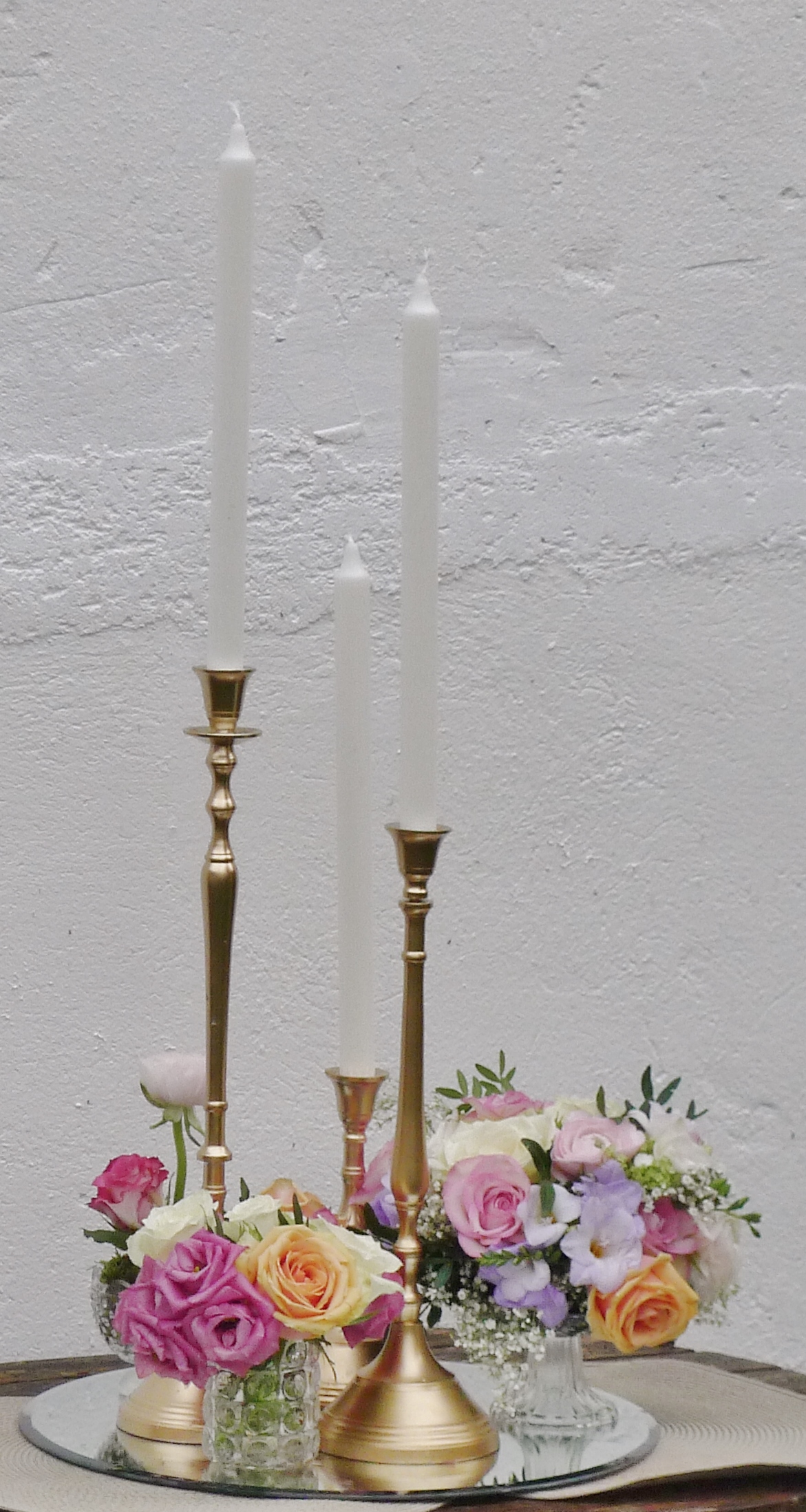J’aime les décorations plutôt volumineuses, entourées de fleurs sous différentes formes éclairées au centre par des photophores, des bougeoirs, des chandeliers. Déclinable à loisir avec du bois, de la mousse végétale, de l’ardoise c’est une décoration qui devrait plaire à beaucoup de futurs mariés !