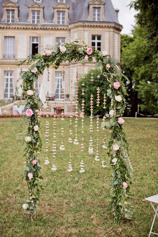 Cette fois-ci, c’est au coté de la talentueuse Lucie de l’agence Perles d’émotions que j’accomplie ma mission : décorer la cérémonie laïque généreusement, boules d’hortensia et suspensions sur une arche fleurie ! Demi-sphère de fleurs pêche et rose en centre de table. J’aime voir les bonnes idées de Lucie éxaucées 🙂