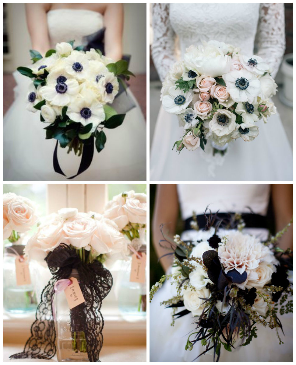 Pour les fleurs, pas la peine de tomber dans le bouquet total black au contraire. De la couleur ou de la douceur avec le Schwarz ruban dentelle ou satin, ça tombe juste.